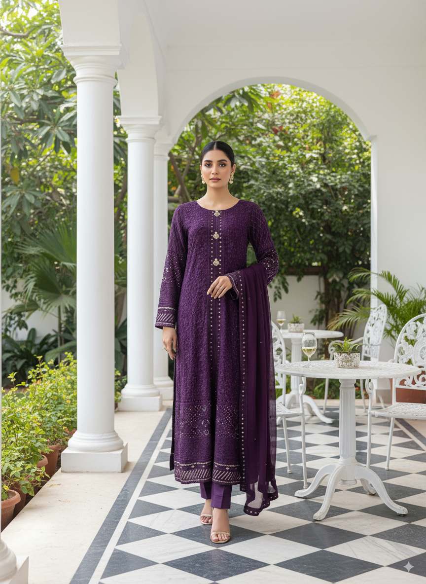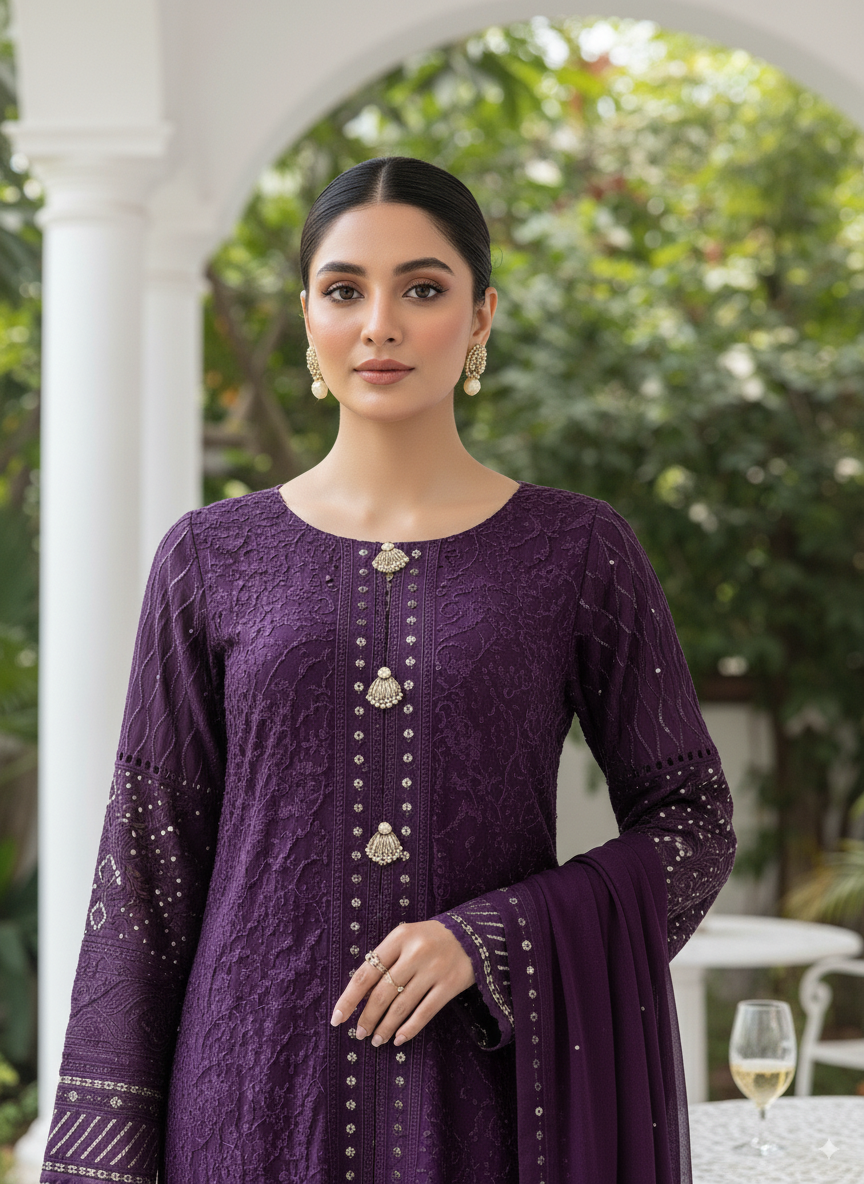 Fabric:Chiffon material thread with sequence work.Metal buttons with beautiful work.