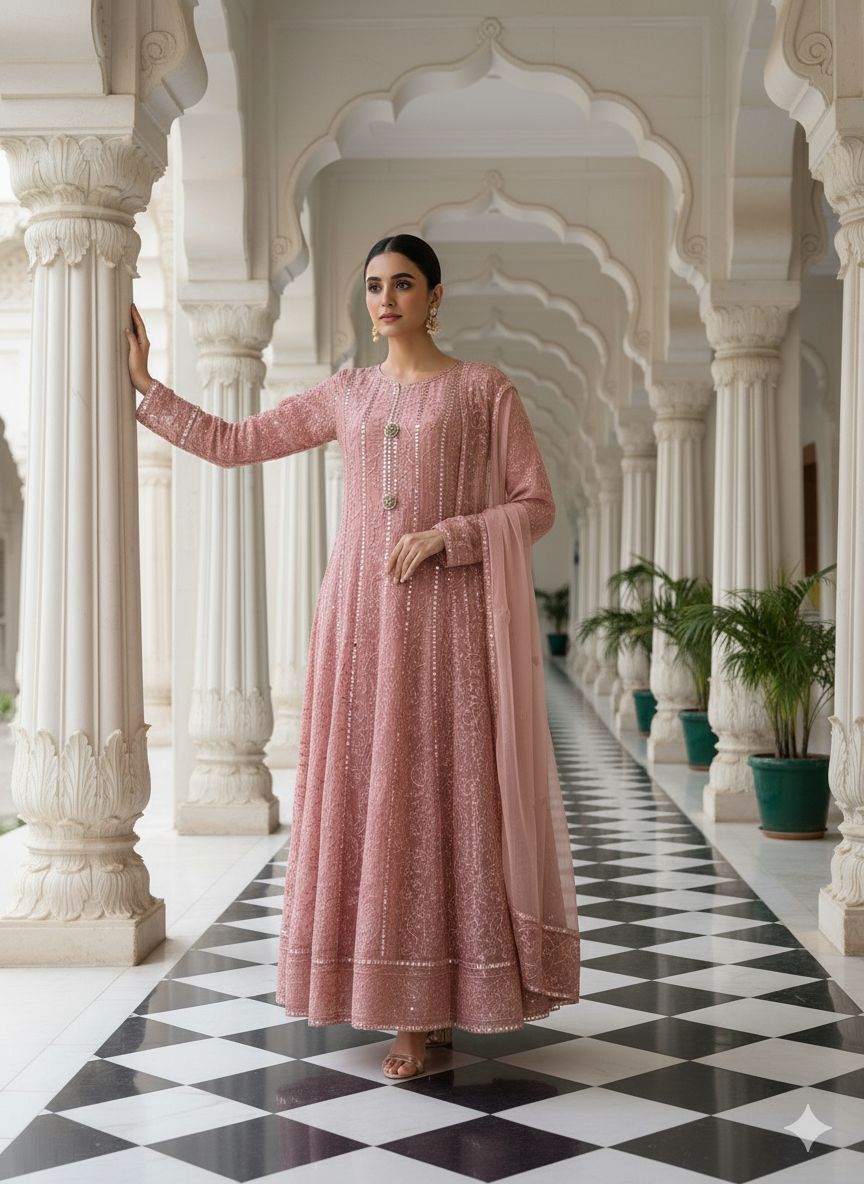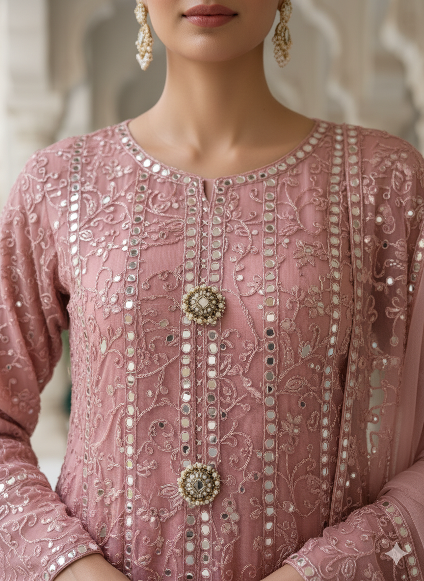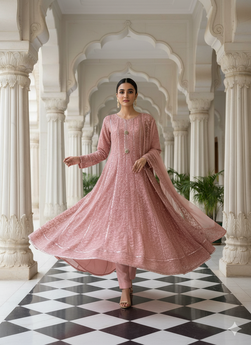 Fabric:chiffon thread and sequence work 3Mm and 9Mm sequences used.Exclusive design embroidered duppata.