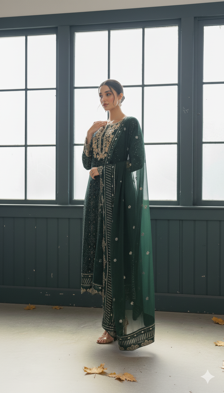 Perfect for exclusive parties and wedding wear, this dress combines traditional craftsmanship with timeless elegance.