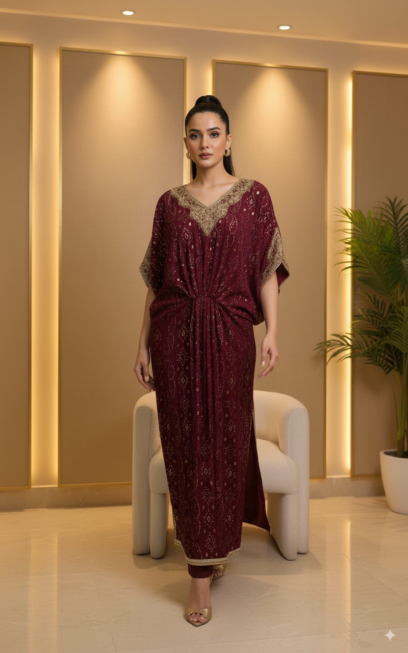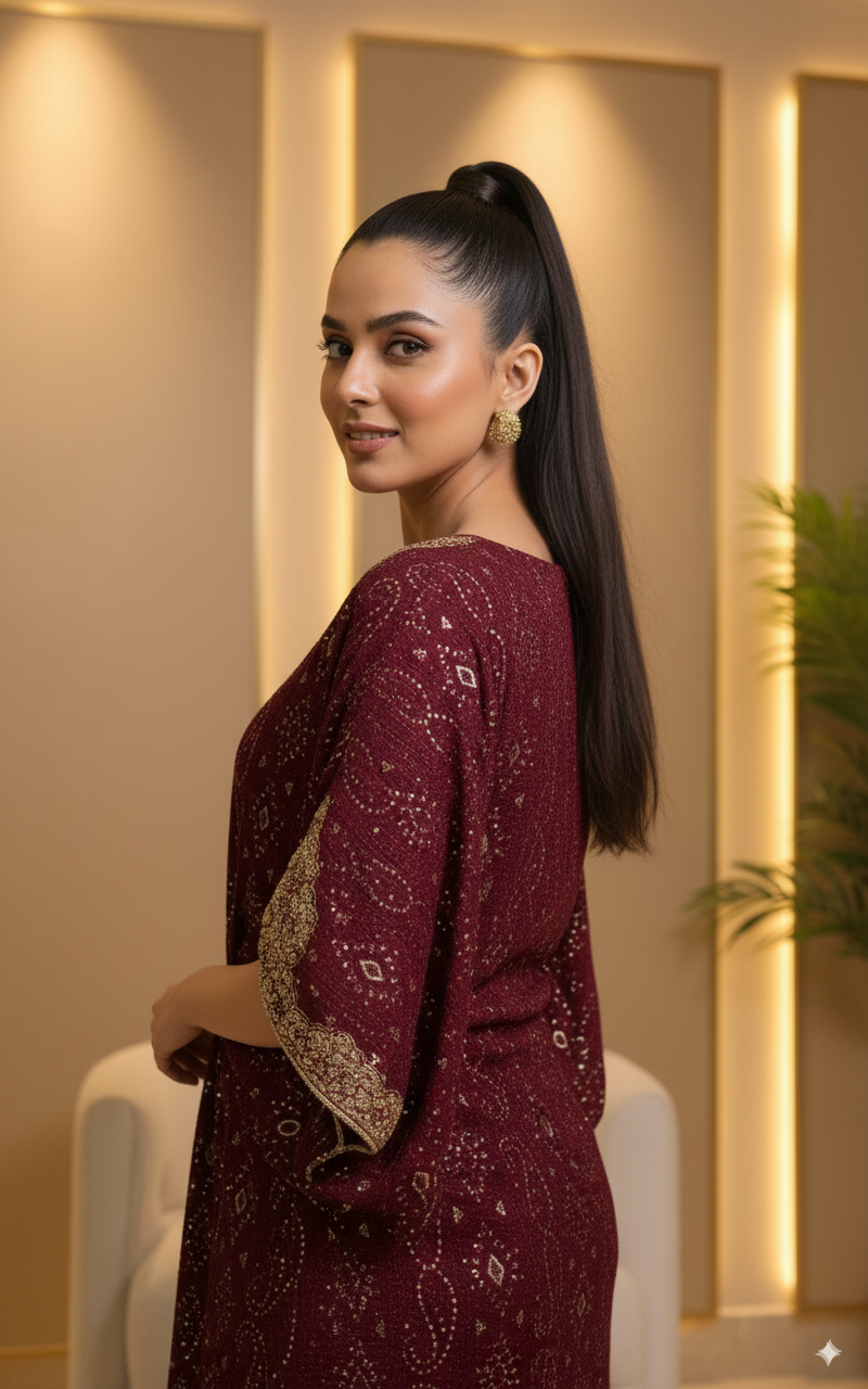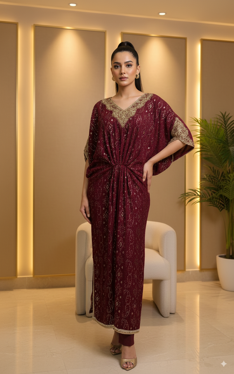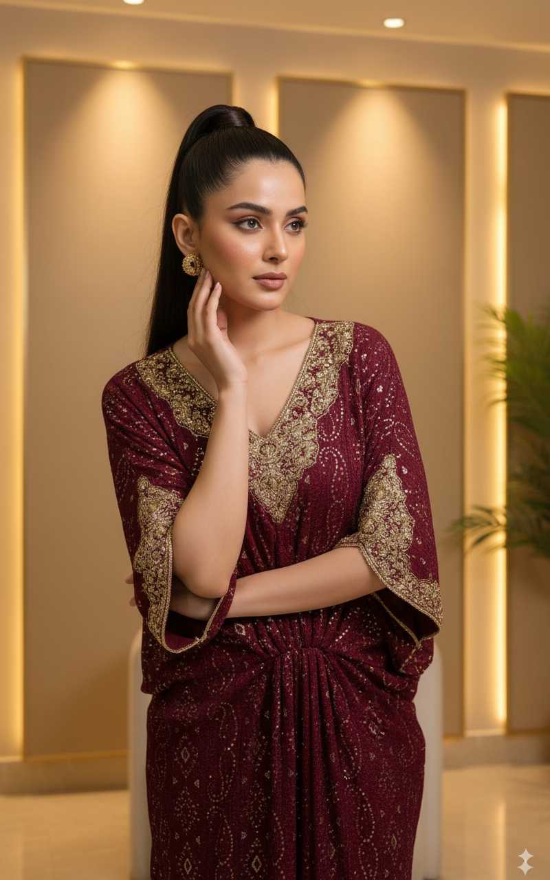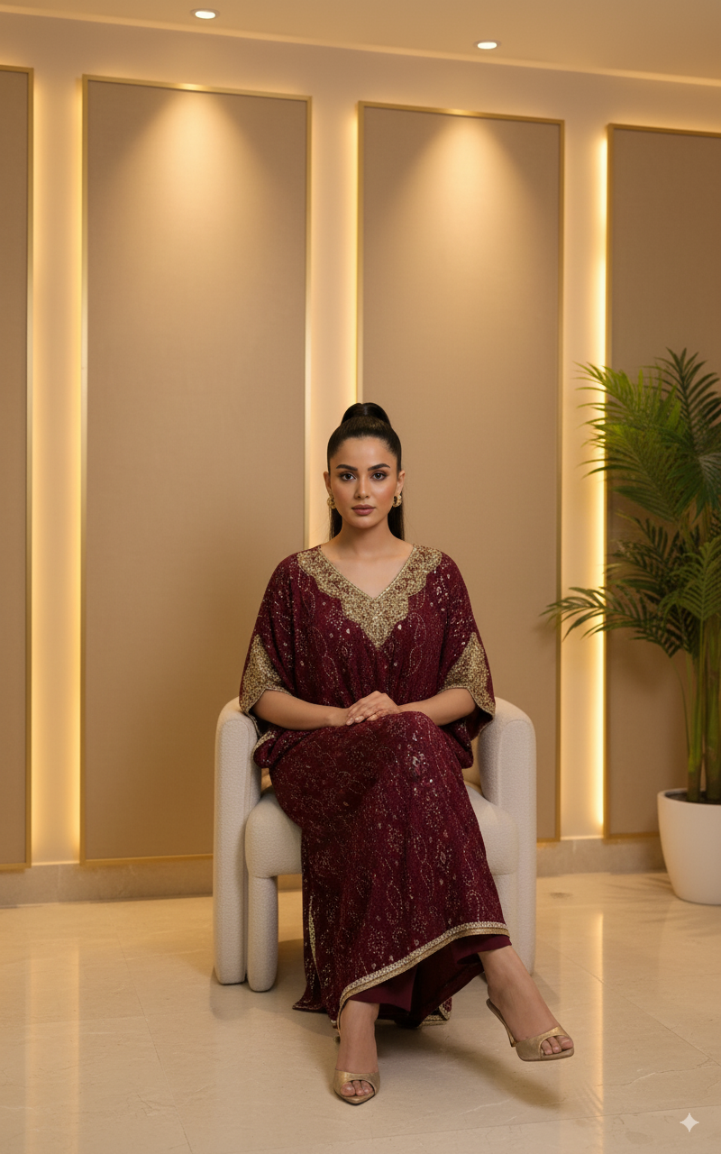 Fabric:Chiffon,Embroidery chicken kari with sequence work,fully hand made dapka ,satara,peals etc used luxury outfit.