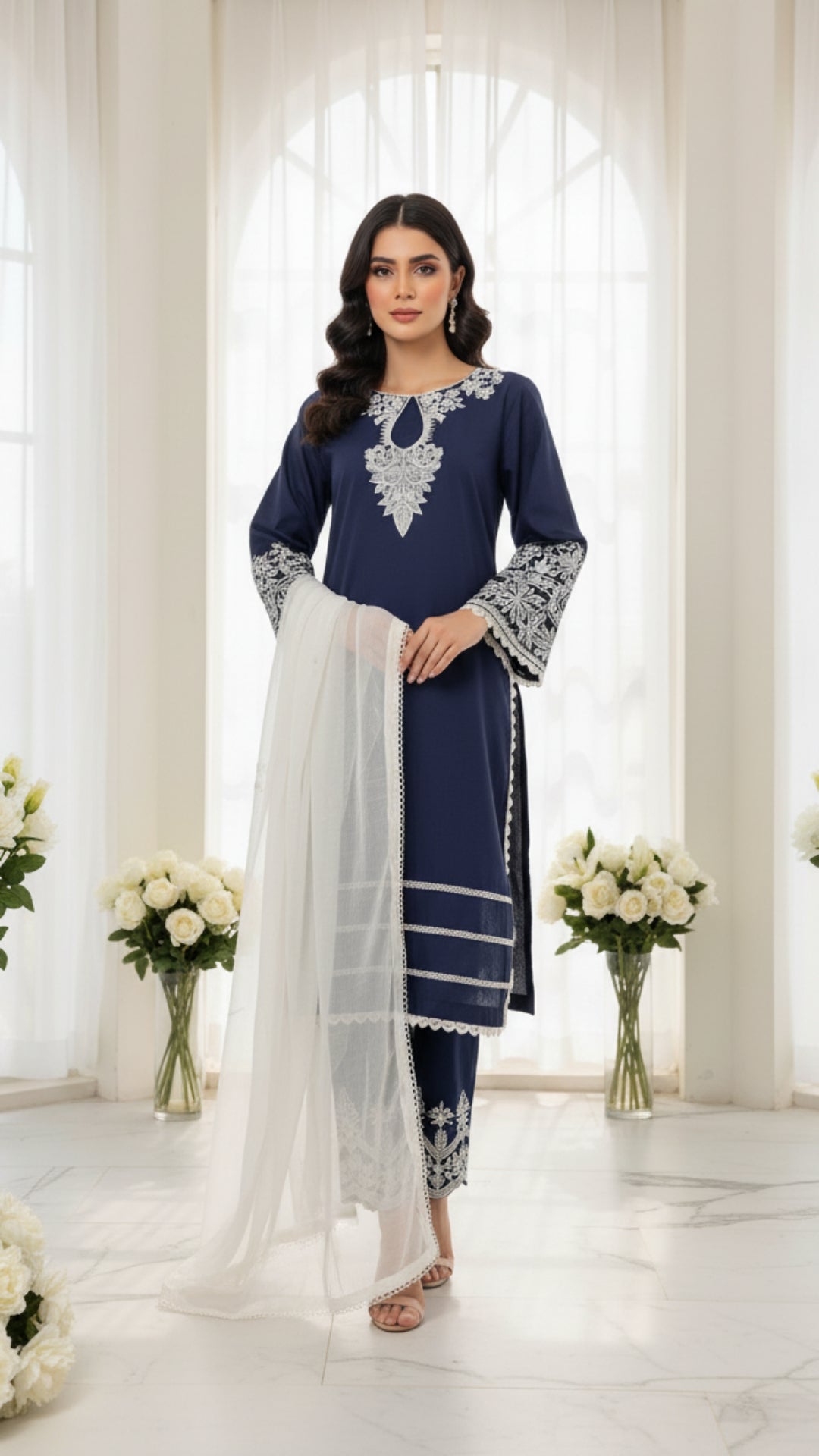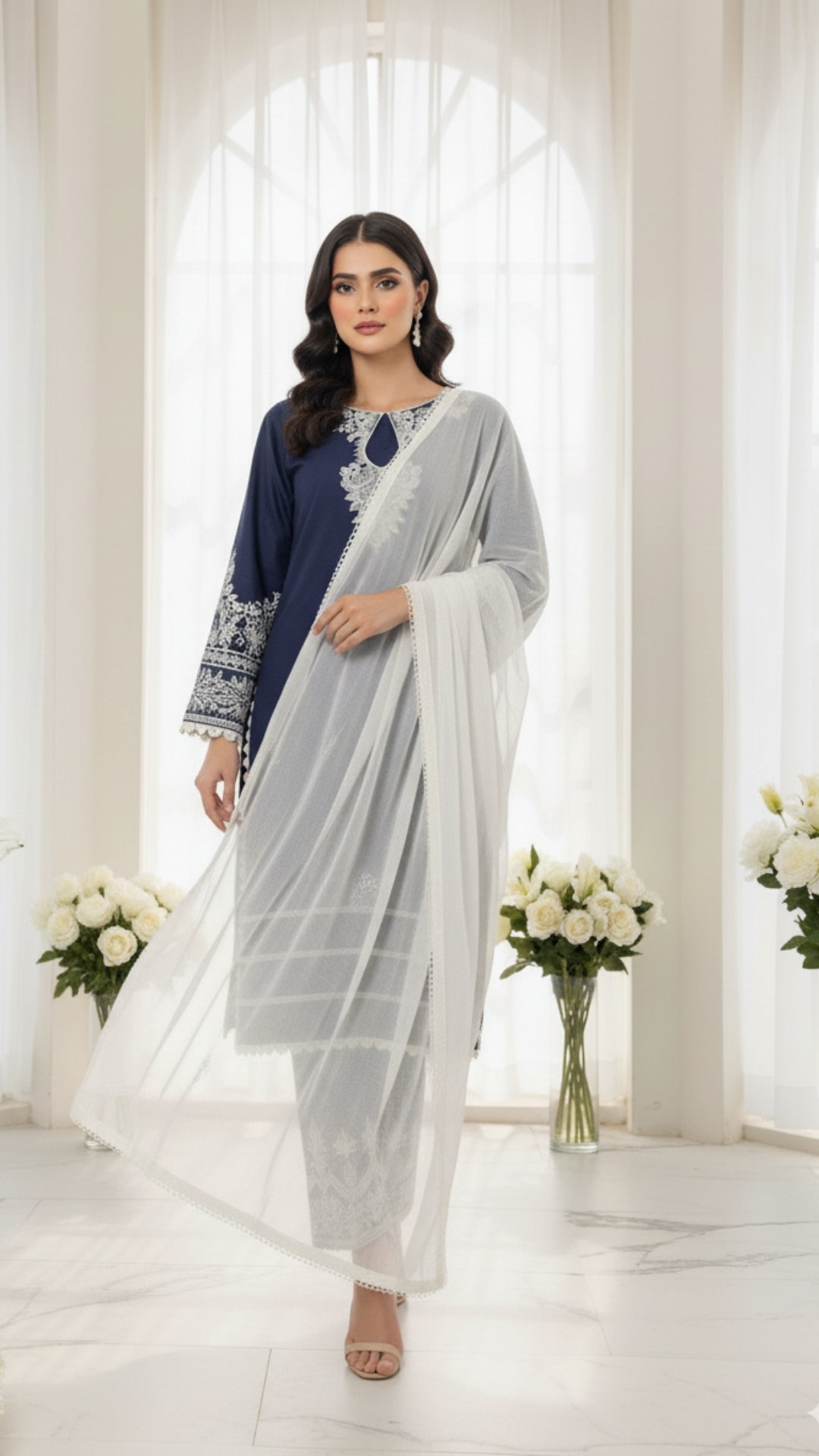 Fabric:Raw silk:embroidery thready work,Duppata chiffon.